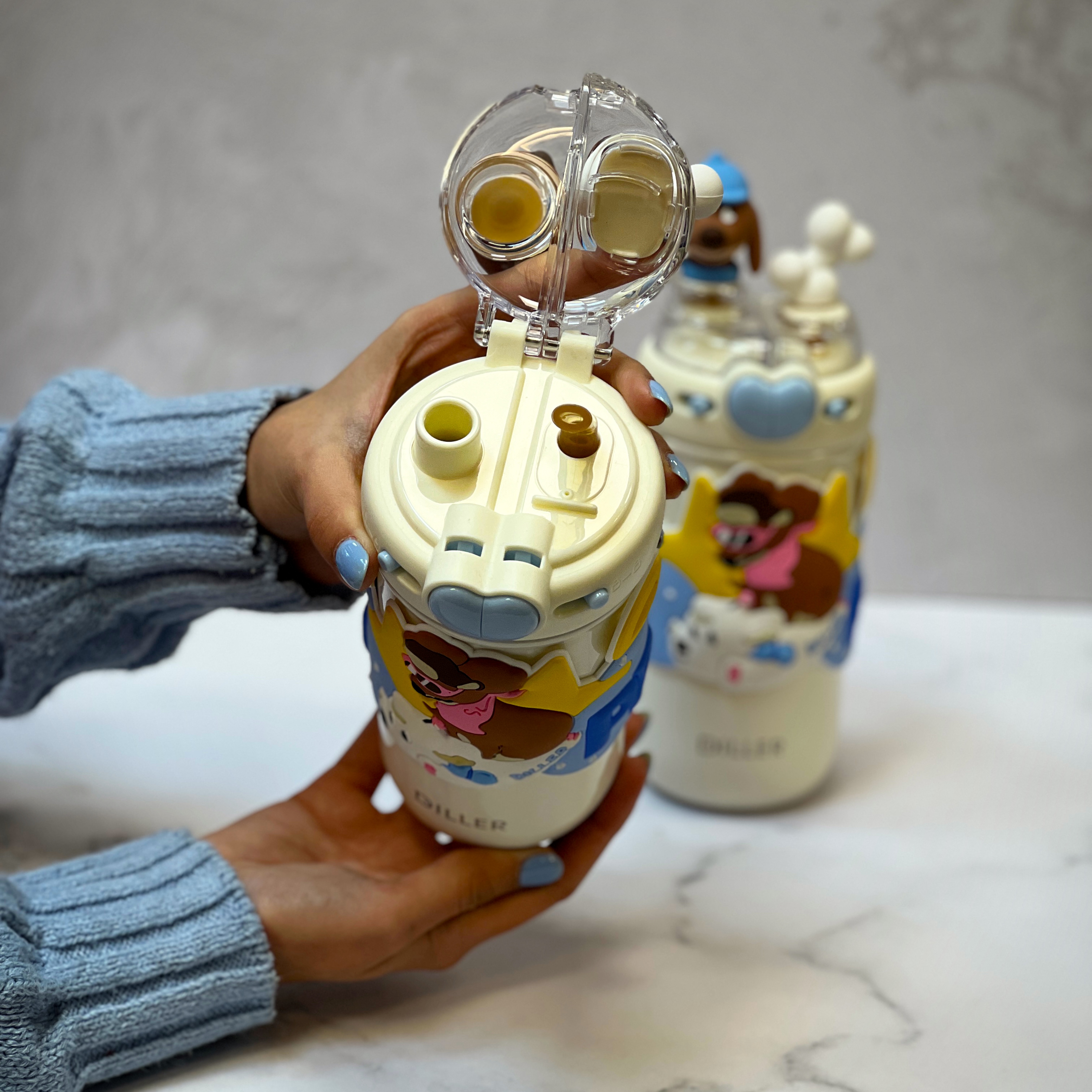 تراول ماگ کودک برند diller با طراحی خاص سیلیکونی سگ و استخوان، انتخاب جذابی برای کودکان است.