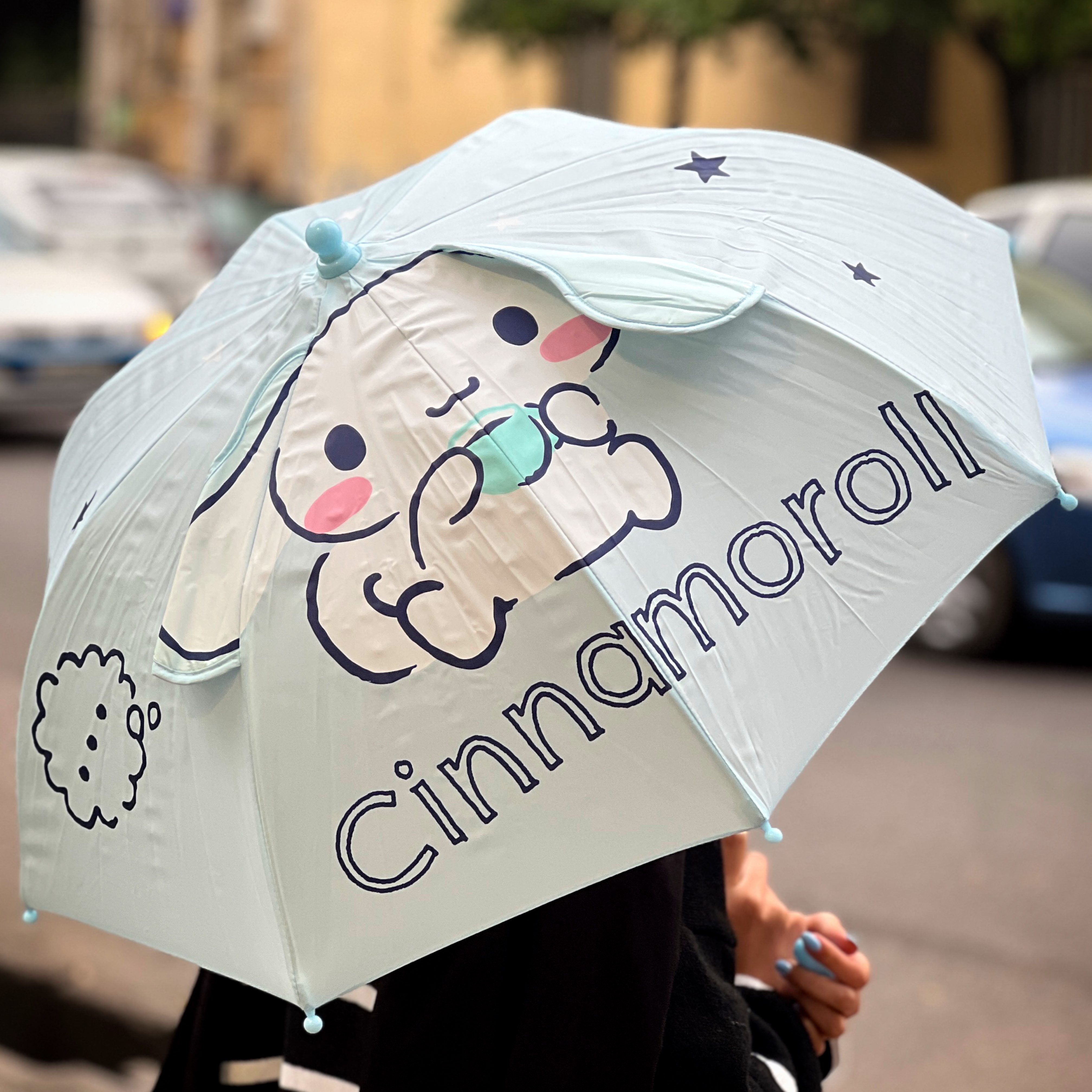 چتر پارچه ای گوش دار با طراحی فانتزی در طرح های محبوب لبوبو، سینامورول و لاتسو، انتخابی جذاب برای روزهای بارانی کودکان است.