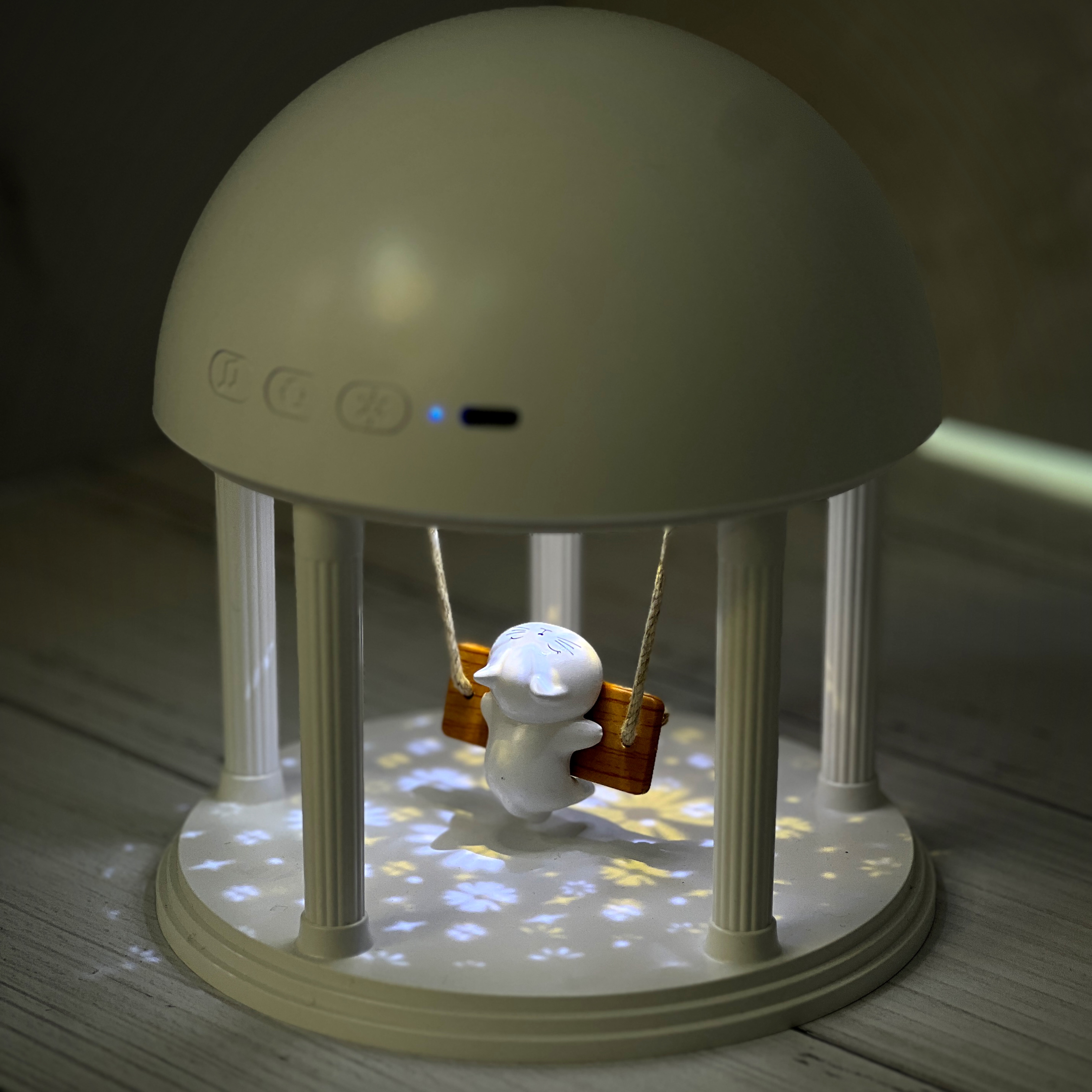 چراغ خواب گربه تابی با طراحی فانتزی و جذاب، ترکیبی از نورپردازی آرامش بخش و امکانات مدرن است. این مدل موزیکال بوده و با قابلیت اتصال بلوتوث، امکان پخش موسیقی دلخواه را فراهم میکند. حالت چرخشی نورها و تغییر رنگ نور، فضای اتاق کودک را به محیطی رویایی و آرام تبدیل میکند.